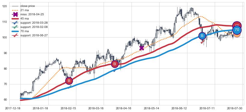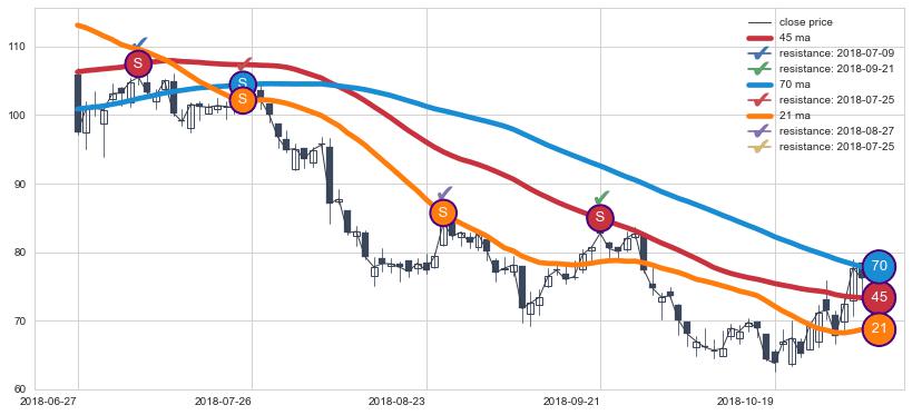 📝 多条均线形成死叉后走势最低价格达到: 67.87