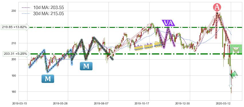 ♘ 阻力价格位203.31,可信任强度78.59%,距离最后交易2020-03-13形成的收盘价格193.16相差 +5.25%