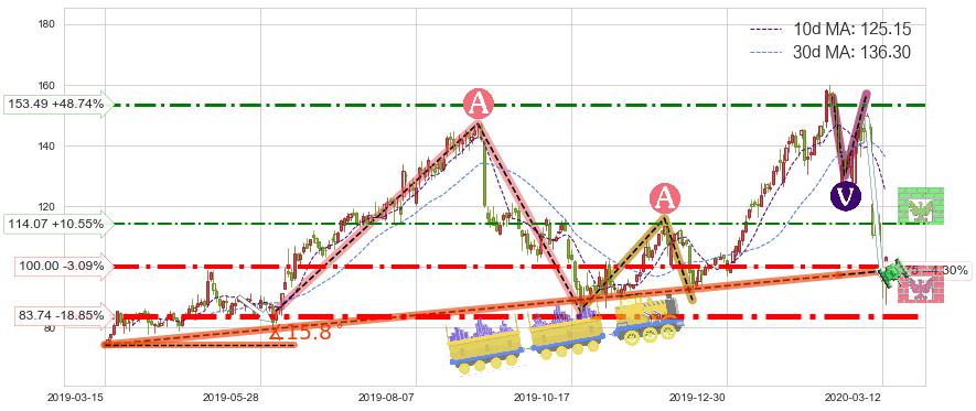 ♘ 阻力价格位153.49,可信任强度58.83%,距离最后交易2020-03-13形成的收盘价格103.19相差 +48.74%