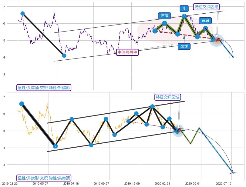 ➢ 头肩顶属【中级别信号事件】升旗形属【长级别信号事件】中长周期组合信号事件,中长事件长度比38.85%