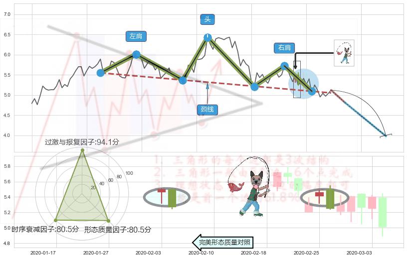 ➢ 【卖1】: 激进型 卖点→(2020-03-04: 5.09 )形成突破头肩顶【反转】形态