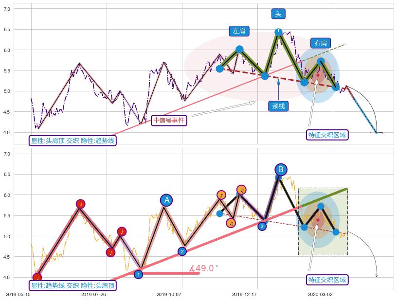 ➢ 头肩顶属【中级别信号事件】趋势线属【长级别信号事件】中长周期组合信号事件,中长事件长度比58.05%