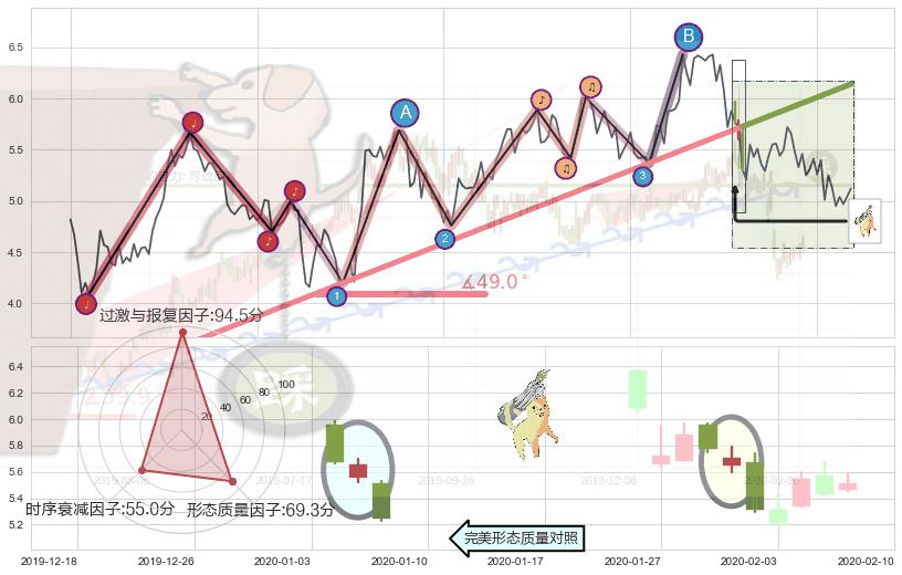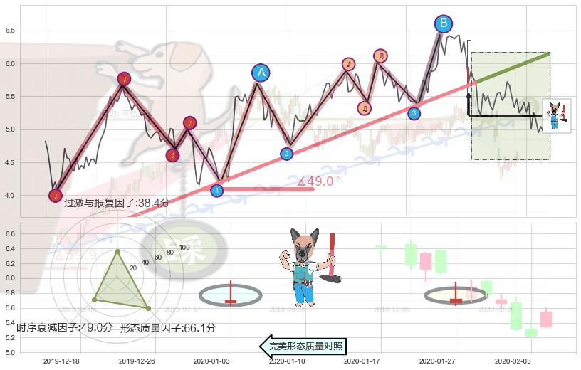 ➢ 2019-05-22-2020-01-31上升趋势存在反转[风险],其原上升趋势的支撑位(6.14)已破位[强阻力信号],原上升趋势角度: 49.0˚