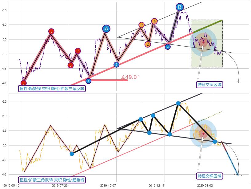 ➢ 趋势线与扩散三角反转信号事件周期长度级别相同,同周期信号事件