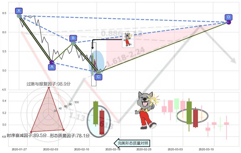 ➢ 未完成【蝴蝶】形态起点X: 2019-10-09, 已到达C点: 2020-02-19, 预测最终D点: 2020-05-13, 共147交易日
