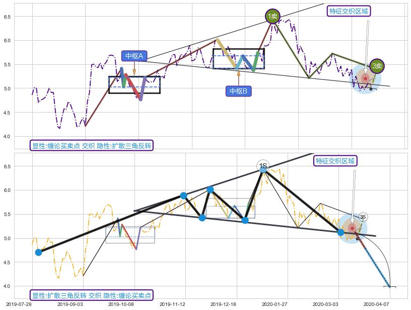 ➢ 缠论买卖点与扩散三角反转信号事件周期长度级别相同,同周期信号事件