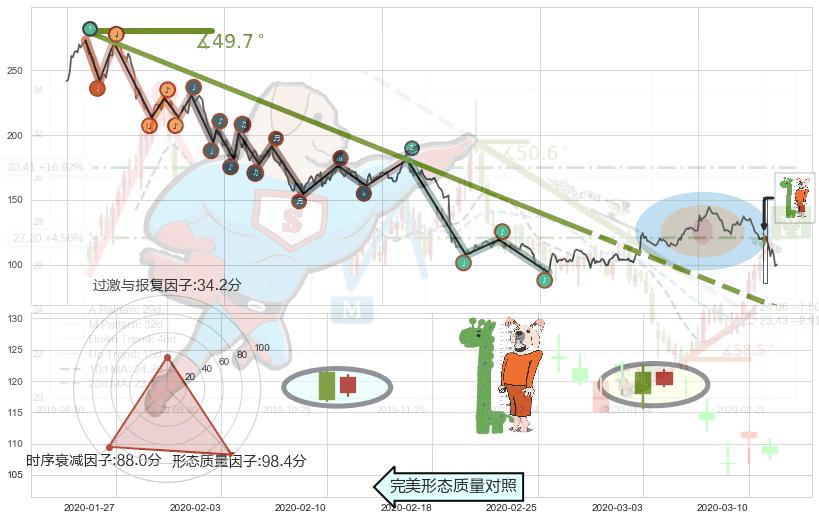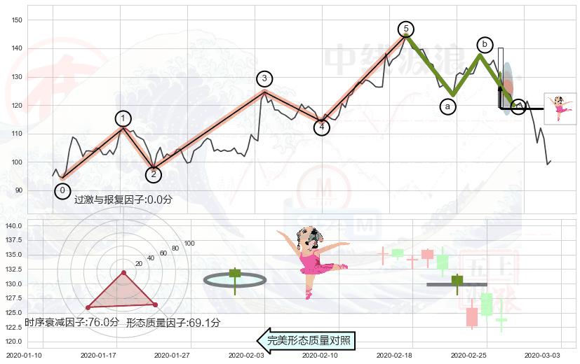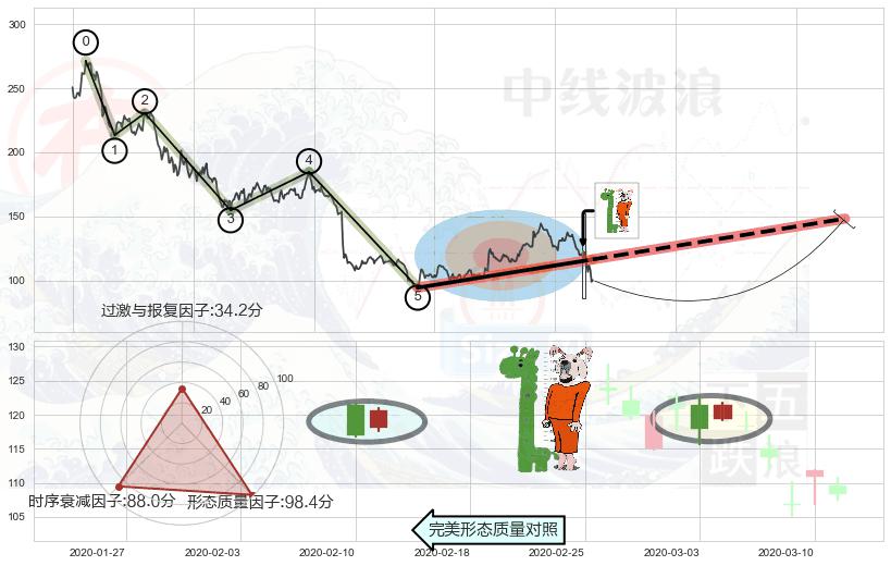 ➢ 🕰 价格走势在2020-02-28至2020-03-03期间形成黄昏之星(夜星),残存影响值:-4.83