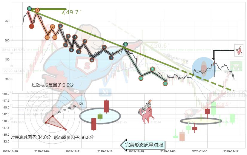 从2018-08-27至2019-03-20,共包含141个交易日,阶段股价下跌-26.34%,阶段股价变动位移路程比: 1 : 9,下跌趋势角度: 66.7