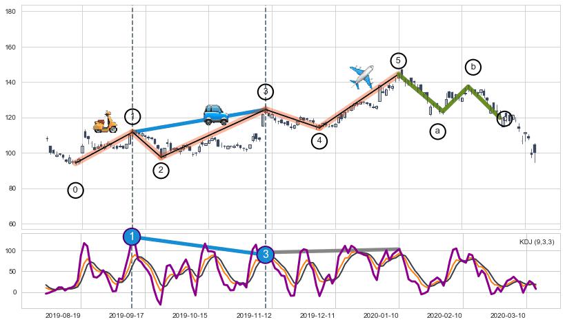 ➢ 【未完成】缠论 起点:2018-10-01, 完成第1中枢A,完成第2中枢B,到达2020-03-13