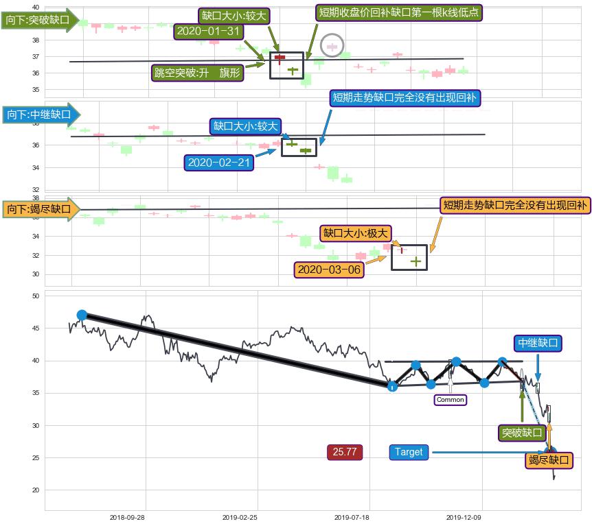 ➢ 2020-01-31形成:向下跳空【突破】缺口