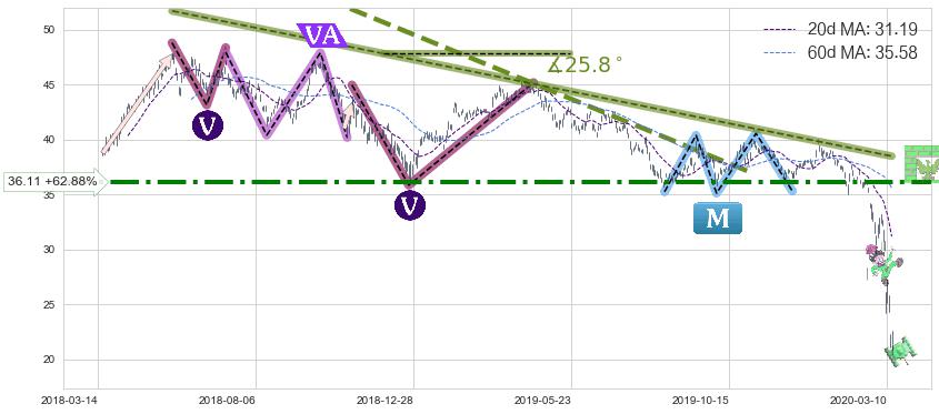 ♘ 阻力价格位36.11,可信任强度82.44%,距离最后交易2020-03-13形成的收盘价格22.17相差 +62.88%