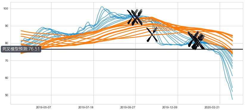 📉 多条均线基于【死叉历史模型】预测最低波谷价格的平均值: 76.51