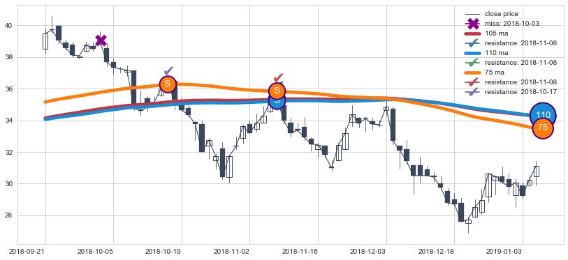 ➢ 最优均线组合共正确确认支撑阻力信号4处,正确确认率 50.00%