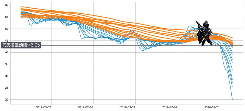 ➣ 55小时均线于(2020-01-24: 47.14)形成【死叉】基于【死叉历史模型】预测死叉后最低波谷价格: 43.39, 死叉后最低价格14.97,已经下跌超出预测最低波谷价格, 预期反弹