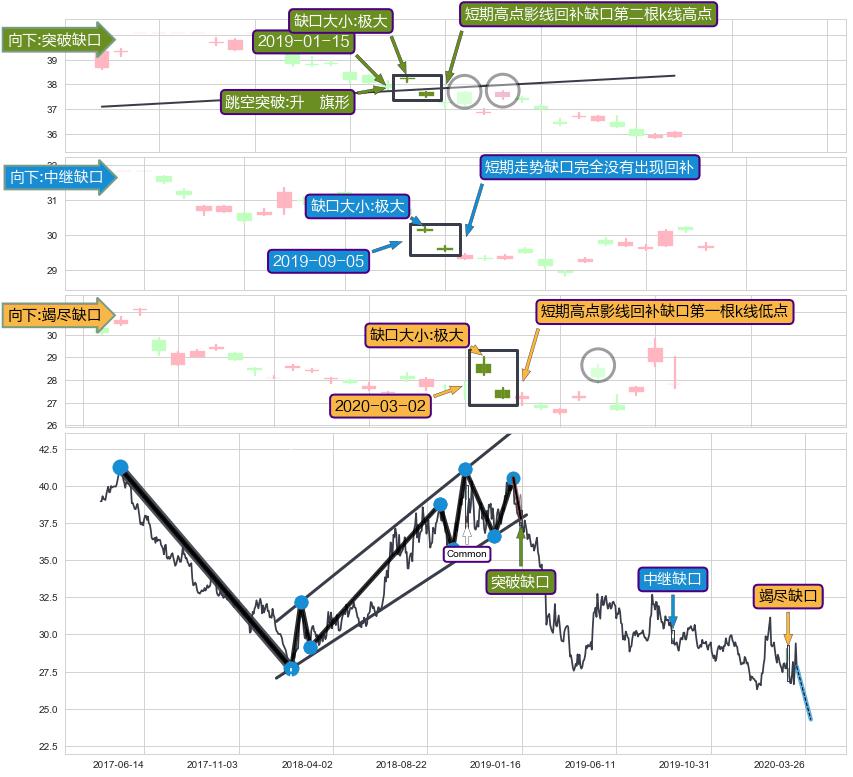 ➣ 中继缺口在突破缺口后再次向下跳空,趋势得到加固