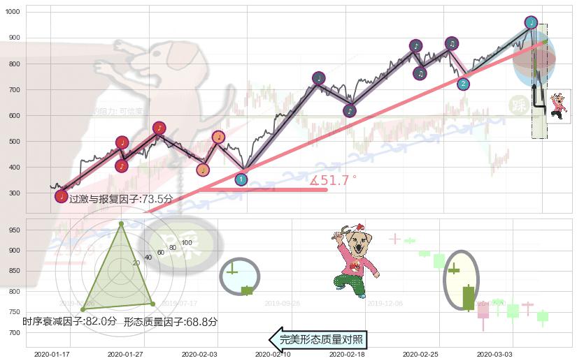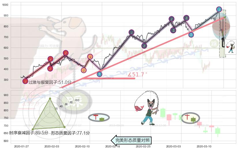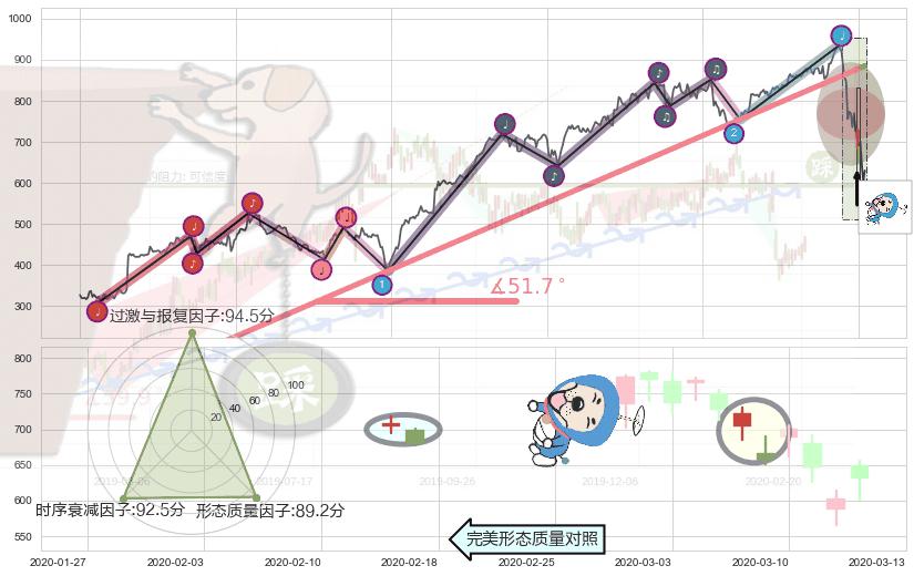 ➢ 2018-04-02-2020-03-11上升趋势存在反转[风险],其原上升趋势的支撑位(885.22)已破位[强阻力信号],原上升趋势角度: 51.7˚