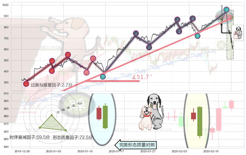 从2018-04-02至2020-03-11,共包含490个交易日,阶段股价上涨85.27%,阶段股价变动位移路程比: 1 : 7,上涨趋势角度: 51.7