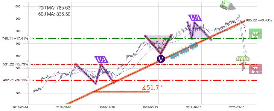 ♘ 阻力价格位740.11,可信任强度81.03%,距离最后交易2020-03-13形成的收盘价格630.36相差 +17.41%