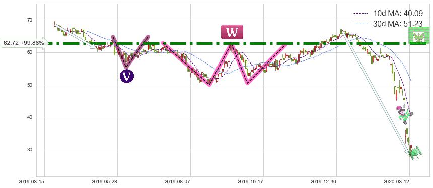 ♘ 阻力价格位62.72,可信任强度91.25%,距离最后交易2020-03-13形成的收盘价格31.38相差 +99.86%