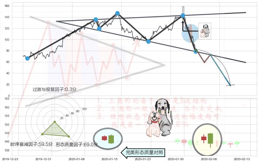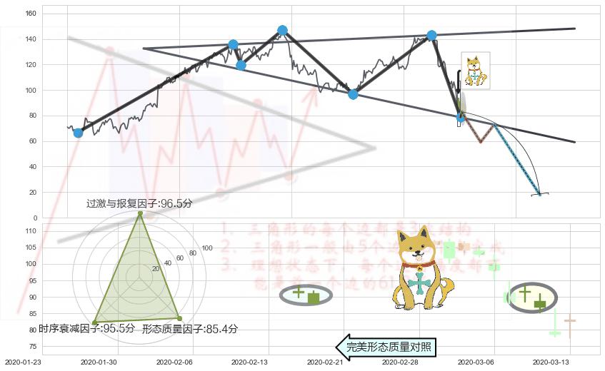 ➣ 【未确认突破,预测即将形成突破】【扩散】三角形反转起点:2018-10-30, 预测突破点:2020-03-19,形态共348交易日
