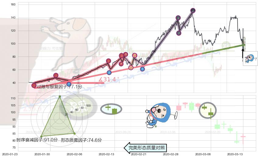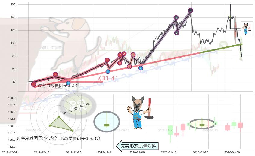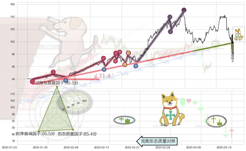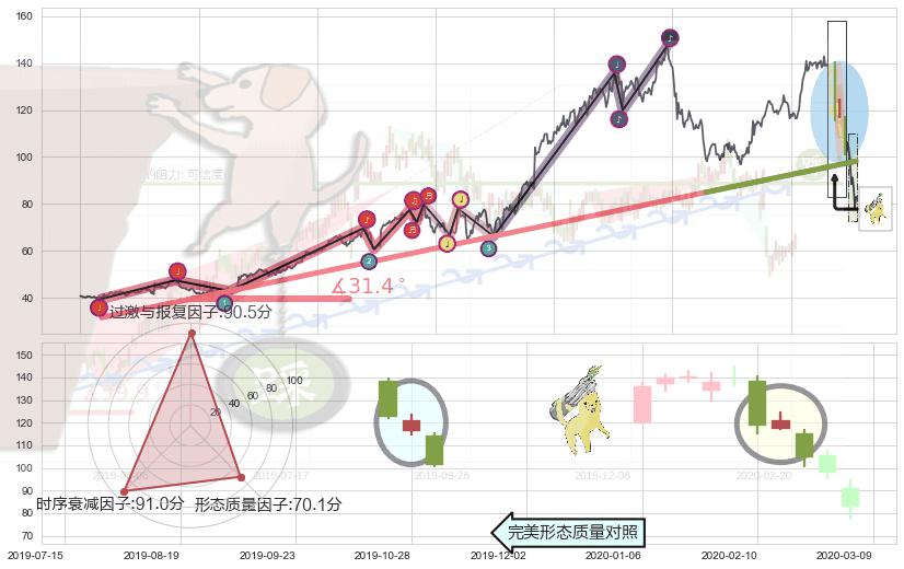 ➢ 🕰 价格走势在2020-03-02至2020-03-03期间形成吊颈线(上吊线),残存影响值:-3.96