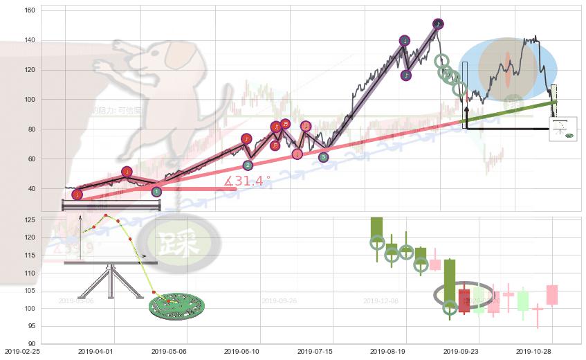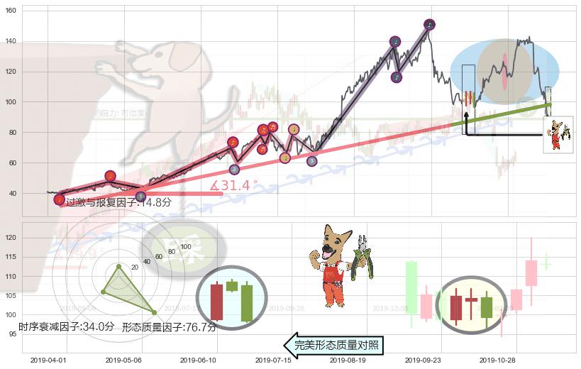 ➣ 2017-08-30-2019-09-11上升趋势存在反转[风险],其原上升趋势的支撑位(98.22)已破位[强阻力信号],原上升趋势角度: 31.4˚