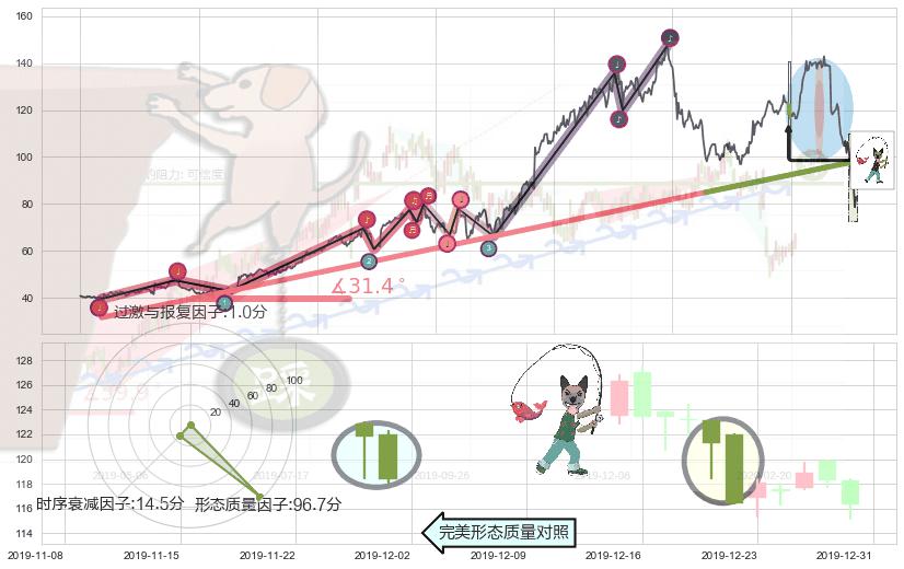 ➢ 🕰 价格走势在2019-12-19至2019-12-20期间形成吊颈线(上吊线),残存影响值:-1.15