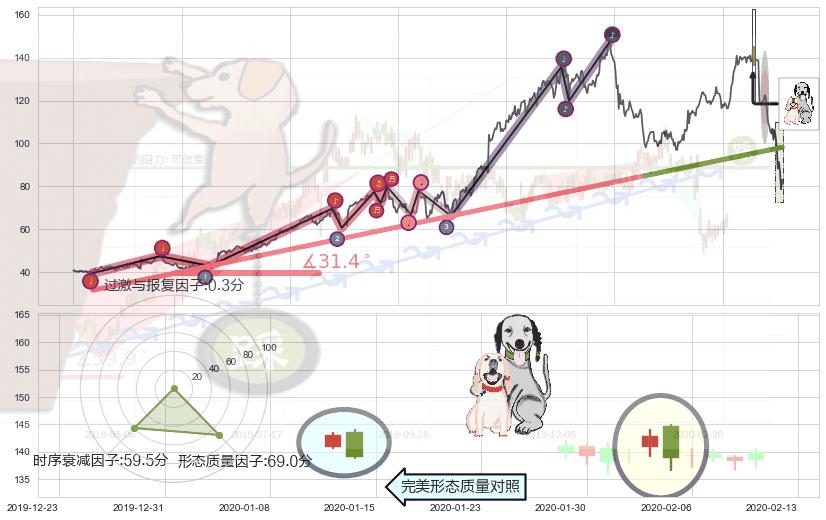 ➢ 🕰 价格走势在2020-02-10至2020-02-24期间形成空方炮,残存影响值:-3.11