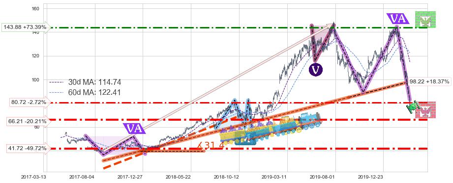 ♘ 阻力价格位143.88,可信任强度63.31%,距离最后交易2020-03-13形成的收盘价格82.98相差 +73.39%