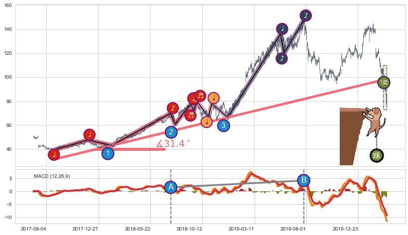 从2017-08-30至2018-10-05,共包含278个交易日,阶段股价上涨68.00%,阶段股价变动位移路程比: 1 : 5,上涨趋势角度: 42.4