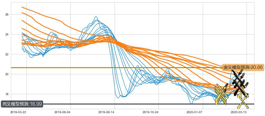➢ 13小时均线于(2020-03-04: 19.69)形成【死叉】基于【死叉历史模型】预测死叉后最低波谷价格: 18.25, 死叉后最低价格15.69,已经下跌超出预测最低波谷价格, 预期反弹