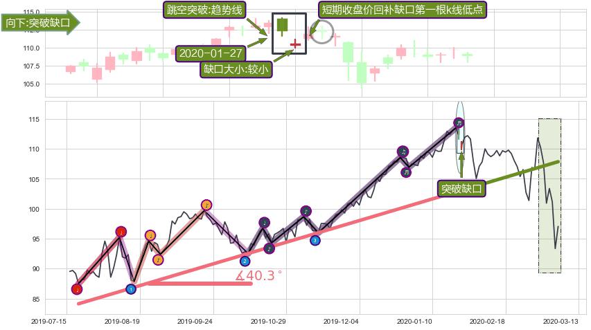 ➣ 2019-07-19-2020-01-31上升趋势存在反转[风险],其原上升趋势的支撑位(107.86)已破位[强阻力信号],原上升趋势角度: 40.3˚