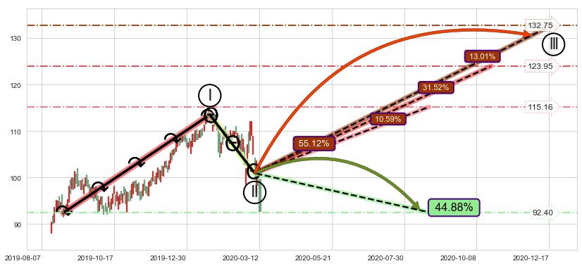 ➣ AI预测: 假定反转启动后, 第❶目标位置(2020-07-17, 99.35)