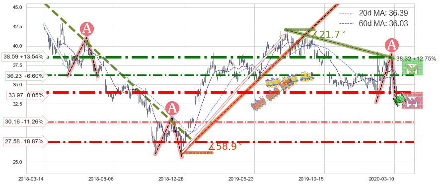 ➣ 【多空实力根本性转变→大方向抉择→空方占优】已在2020-03-12突破【支撑】颈线 34.59