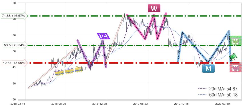 ♘ 阻力价格位71.88,可信任强度74.08%,距离最后交易2020-03-13形成的收盘价格49.01相差 +46.67%