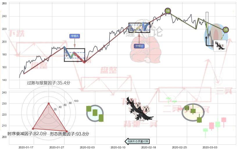 ➢ 🕰 价格走势在2020-02-25至2020-02-27期间形成三只乌鸦,残存影响值:-5.74