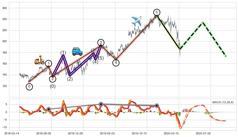 ➣ 第一, 三, 五浪上涨动能逐渐【增强变大】,趋势不断加固