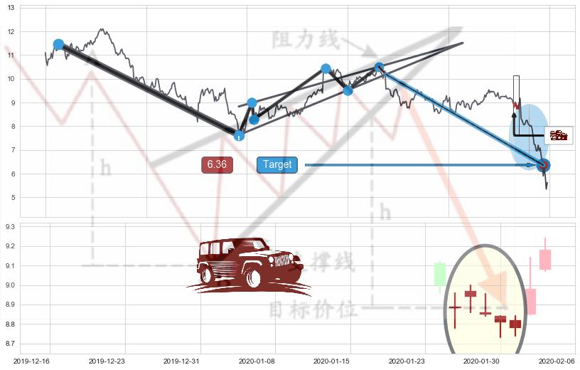 ➣ 【已达成】最小【整理】第一目标价格→(2020-03-09: 6.36 ), 后续继续【整理】下跌动力依然存在,下跌空间适中