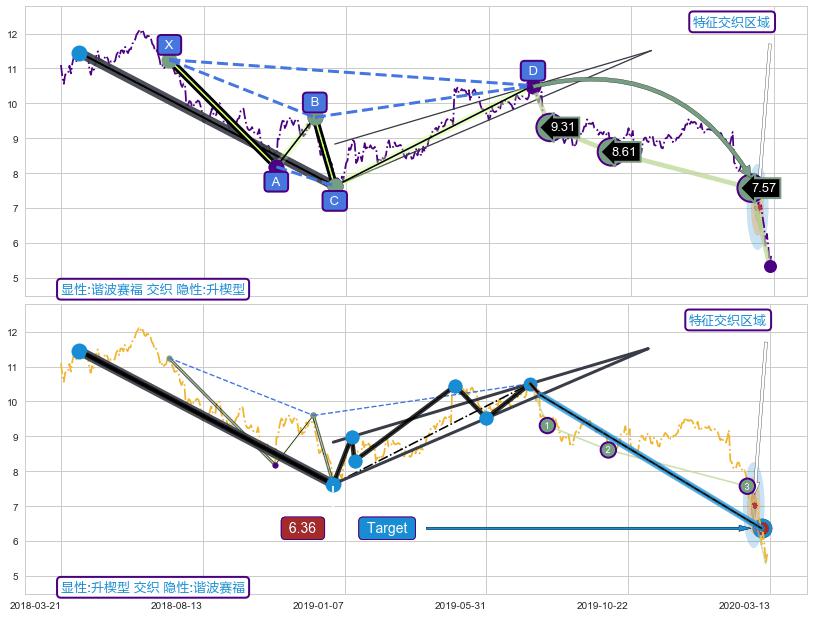 ➢ 谐波赛福:d下跌已到达第❸目标:猜想支撑拉升 → 上涨 →【拐点】机会信号 → 大趋势均值回复