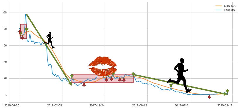 2017-04-18至2018-06-08 慢线与快线多次接触,存在上下穿越,有缠绕