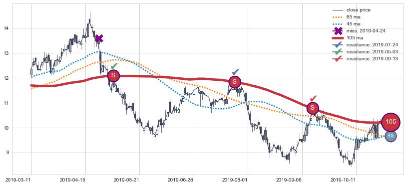 ➢ 最优均线组合共正确确认支撑阻力信号12处,正确确认率 60.00%