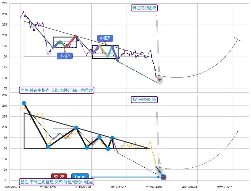 ➢ 缠论中枢点与下降三角整理信号事件周期长度级别相同,同周期信号事件
