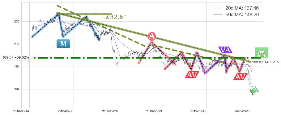 ♘ 阻力价格位169.57,可信任强度95.68%,距离最后交易2020-03-13形成的收盘价格106.63相差 +59.02%