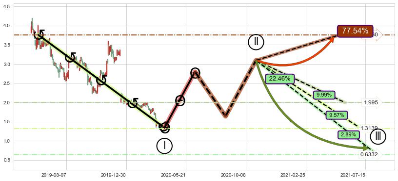 ➣ 循环浪继续向下【平均值】位置(2021-07-06, 1.3139),匹配聚类样本比例42.63%, 可能性概率9.57%