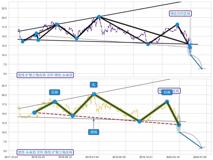 ➢ 扩散三角反转与头肩顶信号事件周期长度级别相同,同周期信号事件