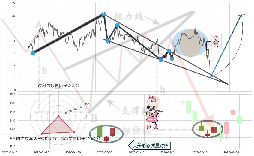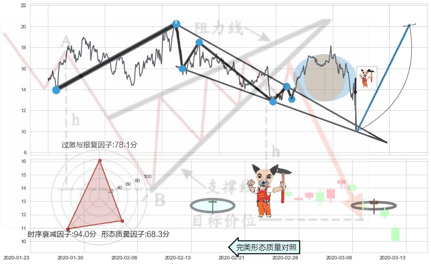 ➢ 🕰 价格走势在2020-03-13至2020-03-13期间形成单针探底(定海神针),残存影响值:6.03