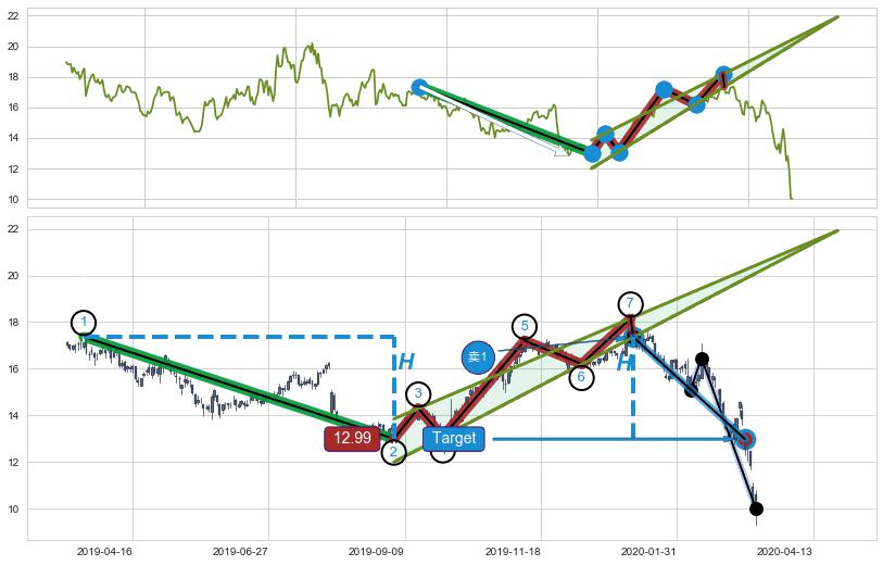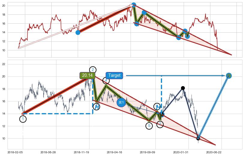 ➢ AI预测: 假定反转如期而至,第❶价格目标位置(2020-07-27, 13.91)