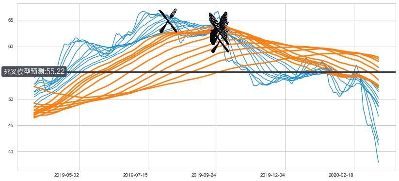 📉 多条均线基于【死叉历史模型】预测最低波谷价格的平均值: 55.22