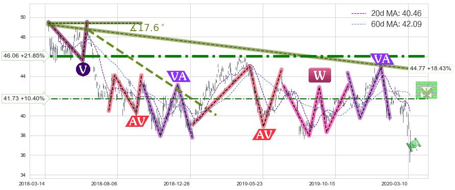 ♘ 阻力价格位41.73,可信任强度50.88%,距离最后交易2020-03-13形成的收盘价格37.80相差 +10.40%