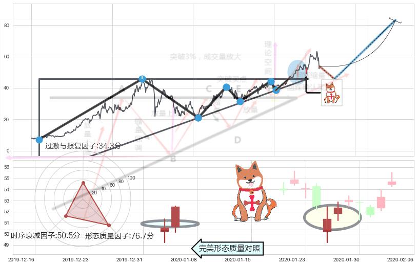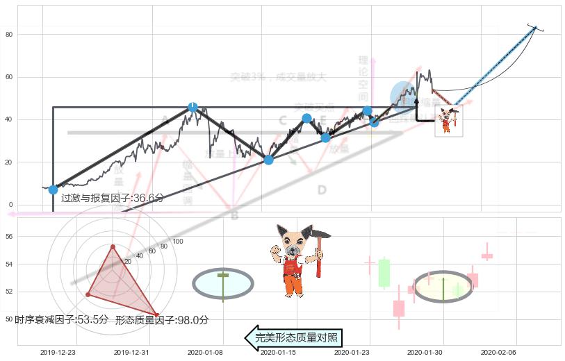 ➢ 🕰 价格走势在2020-01-30至2020-01-30期间形成锤头线(锤子线),残存影响值:4.53